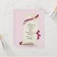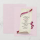 Böjt papper med rosa band och blommor på en strukturerad rosa bakgrund för en inbjudan till 69-årsfest.