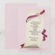 Böjt papper med rosa band och blommor på en strukturerad rosa bakgrund för en inbjudan till 85-årsfest. Inbjudningsdesignen kan redigeras för alla åldersgrupper.
