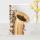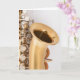 Det här födelsedagskalenderkortet har en bild av en böjd sopranosaxofon.