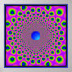 I denna tvådimensionella bild ser linjer och ge hur man uppfattar ett böjt område med en flytande sfär arrangemangt. Färg i den här bilden är inte "webben säker" och ser därför tvättat ut på bildskärmen.