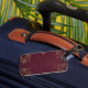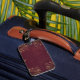 Tryckt resväktmärke med ett foto av en attraktiv bok-bindemedel med gyllene dekorationer. En honeysuckle-design är det viktigaste inslaget i detta getingskinn, med punkter och löv som fyller hörnen.Morells arbete, från London på 1800-talet, från National Bibliotek of New Zealand, redigerat och tillämpat på detta objekt av Alma Wad. Du kan anpassa den nu med egna ord, namn eller monogram.