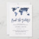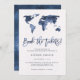 Den här chicen har det moderna bröllop spara datum-kortet en vit, vattenfärgad papper bakgrund med en trendigets blå världsbild och en matchande typografi som säger "bok i biljett!". Perfekt för alla som har ett destinationsbröllop där gästerna måste ordna resan i förväg.