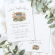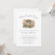 Ett nytt kapitel börjar. Fira bruden med denna söta och eleganta bok-inspirerade bröllopsdusch-inbjudan. Överst står ”Ett nytt kapitel börjar” skrivet med en mjuk handskriven stil, som sätter en varm och romantisk ton för firandet. Strax nedanför visas en akvarell av en trave böcker i nyanser av beige, brunt och blått. Rosa och vita blommor med mjuka gröna blad omger böckerna, medan en delikat pergamentrulle bunden med ett band vilar ovanpå tillsammans med en gammal nyckel, och skapar en charmig, gammaldags mittpunkt.