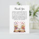 Denna vackra bok- och ringtema-kort är ett perfekt sätt att uttrycka hjärtlig tacksamhet med en touch av litterär charm. Med mjuka akvarellvildblommor i kombination med ömtåliga bok-tema-element är denna design idealisk för baby shower, bröllops shower eller bok-tema-fester. Den eleganta blomsterstilen ger ett tidlöst och varsamt uttryck till ditt meddelande. Tryckt på högkvalitativt papper är det lämpligt för både formella och vardagliga tillfällen. Oavsett om du tackar gäster för deras närvaro, gåvor eller genomtänkta ord, gör detta kort din uppskattning verkligt minnesvärd. En vacker souvenir som kombinerar skönhet och känsla.