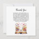 Detta vackra bok- och ringtema tackkort är ett perfekt sätt att uttrycka hjärtlig tacksamhet med en touch av litterär charm. Med mjuka akvarellvildblommor i kombination med ömtåliga bok-temaelement är denna design idealisk för baby shower, bröllops shower eller bok-temafester. Den eleganta blomstilen ger din hälsning en tidlös och mjuk känsla. Tryckt på papper av hög kvalitet är det lämpligt för både formella och avslappnade tillfällen. Oavsett om du tackar dina gäster för deras närvaro, gåvor eller omtänksamma ord, gör detta kort din uppskattning verkligt minnesvärd. En vacker souvenir som förenar skönhet och känsla.