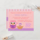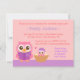 Planera en bok party för mamma så att hon kan bygga bibliotek och läsa sänghistorier för baby. Den här bok-temade inbjudan till barndusch är perfekt för party med sitt söta par ugglor där ugglor symboliserar kunskap och visdom. mor uggla läser en nattsaga bok till hennes baby uggla som är trevlig i sitt bo med ett sovtak på huvudet. Omvänd sida är en lodrät rand mönster och en lila banderoll. Välvilliga och söta val av rosa och lila i färg gör det till perfekt för morsa som har flicka. Anpassa enkelt med information om party.