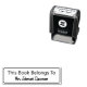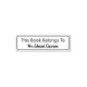 Det här självtryckande frimärke är en textmall som du kan redigera för att visa ett anpassningsbar-meddelande. För närvarande står det på den övre raden i visningen att detta Bok Tillhör ska göra. Lärarens namn går via grund (visas: Mrs Johnson's Classroom). En gräns visas runt texten.