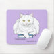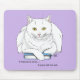 En vit katt sitta på en bok som vill uppmärksamma lila