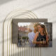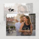Detta enkla och eleganta foto sparar datum-kort för ditt destinationbröllop har modernt avslappnat faux-guldskript som säger "Boka Biljetterna". Mer information passar på baksidan, med en svart illustration av en världskarta för att göra detta perfekt för ett bröllop där människor kommer att kunna resa!