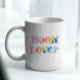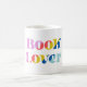 Bokälskare färgrik vit mugg med retro typografi text. Trendig mugg med färgrik snygg font, bokstäver för bokälskare, kvinnor, bokmaskar, läsare, tjejer som älskar att läsa, vänner, mammor, mödrar, bibliotekarier, författare, författare, bokredaktörer