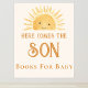 Den här Bokar For Baby Baby Shower-signalen har en gult vattenfärg som leker sol och terracotta-typografi. Ursprunglig vattenfärg © Michele Davies.