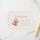 Det här söta skäggiga babyduschkortet har en vattenfärgad ekorre i en luftballong, nedanför ord "Bokar för Baby" i handskriftsteckensnitt. Det redigerbara meddelandet är i brun sans serif-typ på en beige bakgrund.