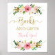 Rosa och guld bokar och presentskylt för babyduschflicka
