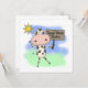 En svart och vit ko får i en anda att främja läsningen eftersom han har en skylt som lyder "Läs mer Bokar" på temat T-shirts, mugg, kort, klistermärken, magneter, nyckelkedjor, keepsakes, hoodies, tote bags och andra kläder och presentartiklar.