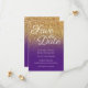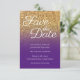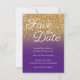 En övertoning av royalets lila mot bakgrund av guld glitter vid Faux borkeh. Du kan anpassa det vackra teckensnittet stilar för att skapa din spara datumen. Guld glitter är skapat med ett digitalt färgat foto.