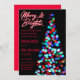 Den här festliga och coola företags-julparty-inbjudan är den perfekta designen för att skapa stämningen för din säsongsbetonade händelse. Den har en modern och konstnärlig färgrik grön, blå, röd, orange, rosa och turkos bokeh-julgran på toppen av en svart bakgrund med en glödande röd och vit typografi-citat, "Glad och ljus". Den är trendig, unik och rolig!