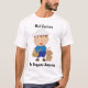 En chibi stil-postbärare pattar en söt brun hund på huvudet på roligtens skjorta. I texten på skjortan står det: "Postföretag är borta Fantastisk." All text kan vara personlig och anpassad efter dina behov. Underbar gåva för uppskattning av postbärare!