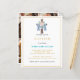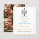 Personligens baptisminbjudan med anpassningsbarnas fotokollage. Modern blommigt ro med blått trasa fyllt trä av kor på framsidan med närmare uppgifter om inbjudan nedan. Elegantens moderna baptisminbjudan till baby.