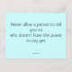 Skicka ett vykort med ett citattecken - inspirera, uppmuntra, uppgradera någon med dessa vykort för coolor. Det här kortet har ett Eleanor Roosevelt-citat. Låt aldrig någon säga nej till vem som inte har makten att säga ja.
