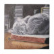 Denna keramiska platta med sovande katt visar den originella konstverket "The Bookmark" som föreställer en grå katt som sover på en gammal bok i en mörk bokhandel eller bibliotek. Denna katt-tema platta finns i två olika storlekar och kan användas som en trivett eller en vacker accentplatta perfekt för kattälskare! Konstverk Copyright: Dominic A. White.