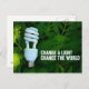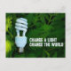 Jorden Dag-kort med kompakt lysrör och frasen "Ändra ljus, ändra världen". ditt budskap för att skydda jorden med våra vykort för miljövänligt tillfällen och hälsningskort!