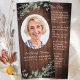Rustic Wood Eucalyptus Sympathy Funeral Prayer Cards. Det här eleganterna minneskortet för böner har en eukalyptus grey på trädeskonstruktionen. "In Loving Memory" Anpassa det här minneskortet för begravning med dina nära foto, namn & data och känslor. Tillbaka ~ 'Miss Me' Dikt, som kan vara personlig, var snäll och nå ut om du vill ha en annan design än en specifik dikt. Det här minneskortet kommer att vara en välkänd keepé, för begravningstjänster och firande i livet. COPYRIGHT © 2020 Judy Burrows, Black Hund Art - Med alla Höger reserverade. Rustic Wood Greenery Memorial Funeral Prayer Card