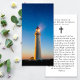 Det här minnesbokmärket har en fyr på framsidan och en bön på baksidan. Du kan ladda upp ett eget foto och ändra versen på baksidan till en bön eller dikt som du själv väljer.