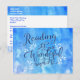 Bokmärke för roligt eller bok-markör för medlemmar i klubben bok. Fyll i adress med inbjudan eller mötespåminnelse och använda sedan kortet som ett bok-märke. Blått och vitt färg-tema. Modern typografi "Att läsa det är ett underbart sätt att leva". Perfekt för bok älskare, bok mask och biblier.