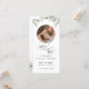 Beundra gästerna med det här fotot på eleganten Spara datumbokmärket. Utformning med utsökt, handmålad vattenfärgad blommigt, grönt löv i grönt, oliver, dammig blått och tealtoner, som innesluter ditt foto i attraktiv, cirkulär övertäckning av ram. Fantastiskt "Spara datumfrasen" i modern handskriven kalligrafi. Det främsta centrala området i fodral är fritt att slå en helhet och försköna bokmärket med ett dekorativt band. Lägg till namn, datum, ställe och all annan extra-information som du vill ha. Tillbaka med blommigtens gröna logotyp som innesluter snyggten "nytt datum" med "spara datumfrasen" i modern kalligrafi, ditt datum och din brud och groom namn.