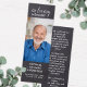 Rustic Chalkboard Sympathy Funeral Prayer Bookmark. Minnet av ditt kära med vårt vackert designade minneskort. Perfekt för begravningar, minnesmärken och firande i livet, detta kort är en hjärtefråga för familj och vänner. Personlig Design: Lägg till ett omhuldat foto av din älskade för att skapa en verklig personlig. meningsfull Dikt: Välj bland ett urval av hjärtliga poeter som fångar kärnan i din älskades själ och arv. Skapa ett bestående minne som firar ditt älskade liv och arv med detta smakfulla och sentimentala bönekort.