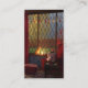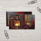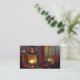 Ett mysigt läshörn på en regnig höstdag. Runt vid himlen med en blazande eld är rödpansarstolar med staplar av bokar och tårar och en tekanna för att fullborda komforten. Utanför en gult döljs den blåsande regnet, som sprinklerar det fönster där en ingerkatt tittar ut.