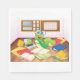 En bokmask i tecknad stil grönt i ett klassrum. Den här designen ser ut att vara effektiv på dessa Pappra servetter
