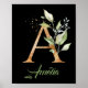 Bokstav A monogram grönska eukalyptus guld svart Poster