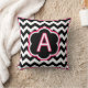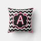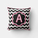 Bokstaven A. Vacker monogram (enstaka initial) kastkudde. Kraftiga svarta och vita sicksack-ränder (chevron), med vita och fuchsia detaljer och en initial i mitten.