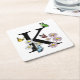 Bokstav K Blommig Akvarell Fjäril Monogram Underlägg Papper Kvadrat