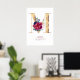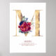 Bokstav M Monogram Blommig Marinblå och Vinröd Poster