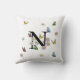 Bokstav N Blommig Fjäril Monogram Initial Kudde