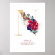 Bokstav N Monogram Blommig Marinblå och Vinröd Poster