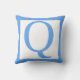 Bokstaven Q. Vacker monogram (enstaka begynnelsebokstav) kastkudde. Kanten och den enskilda bokstaven är i babyblått.