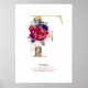 Bokstaven F Monogram Blommig Marinblå och Vinröd Poster