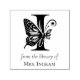 Fjärilsmonogram Bokmärke Självfärgningsstämpel - Anpassningsbar Biblioteksnamnskylt Design. Lägg till en personlig touch till din bok samling med denna design med bokstaven I monogram med fjäril och blom- detaljer. Anpassningsbar text som lyder "Från bibliotek av" och ditt personliga namn, denna stämpel säkerställer att du aldrig förlorar en bok igen. Denna design kombinerar vintage charm med modern praktiskhet, vilket gör den perfekt för att märka ditt personliga bibliotek eller ge som gåva till en medbokälskare. Oavsett om du är lärare, bibliotekarie eller bara älskar att läsa, är dessa anpassningsbara namnskyltar ett stilrent sätt att säga "Denna bok tillhör mig". Perfekt för personliga bibliotek, bokälskare, läsare, lärare och skolbibliotek