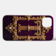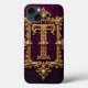 En slående guldförgylld prydnadsram prydd med pärlor och ädelstenar, mot en livfull lila sammetsbakgrund.