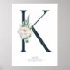 Bokstavsmonogram K Vita Blommor och Grönska Poster