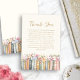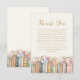 Dessa kort är genomtänkt utformade med samma frodiga akvarellillustrationer av böcker och vilda blommor som finns genom hela kollektionen. Den eleganta blandningen av retro vintage skrivmaskinsstil och trendig handskriven guldsnurr på en elfenbensvit bakgrund lägger till en personlig och hjärtlig touch till dina meddelanden om tacksamhet.