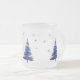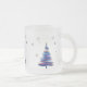 Make a stunning statement with this Bold Abstract Brush Stroke Frosted Glass Mug. The design showcases a vibrant winter tree created with dynamic blue, white, and red brush strokes, topped with a metallic gold star. The elegant gold and blue Snowflakes add a touch of sophisticated shimmer.
