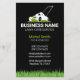 This eye-catching flyer design is perfect for lawn care professionals who want to make a strong first impression. Featuring a striking black and white lawnmower icon on a black background, the card exudes professionalism and reliability. The lush green grass border adds a touch of nature and reinforces your expertise. With ample space for your company name, contact details, and a list of your services, this design is both visually appealing and informative.