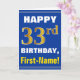 Bold, blå, faux Guld 33:e födelsedagen med Namn-ko Kort