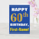 Bold, blå, faux Guld 60:e födelsedagen med Namn-ko Kort