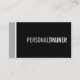 Affärskortet Fet Black och Grått Personal Trainer (Fet Black and Personal Trainer) med information i fet text stil på svart bakgrund med vit och grått side gräns. Perfekt för personlig tränare, tränare och tränare och många andra yrken.