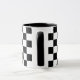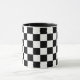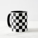 Snyggt mugg har ett fet svart och vitt schackat mönster som består av rader med växlande vita och svarta fyrkanter som på en flagga i tävlan. Mugg har ett svart handtag och insida som du kan anpassa i sidlisten.